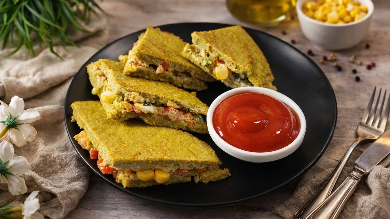 This vegetarian protein recipe is easy to make, healthy, and perfect for busy mornings. It contains no maida, no junk food, and no bread sandwich no unhealthy ingredients, making it a great option for kids and adults.