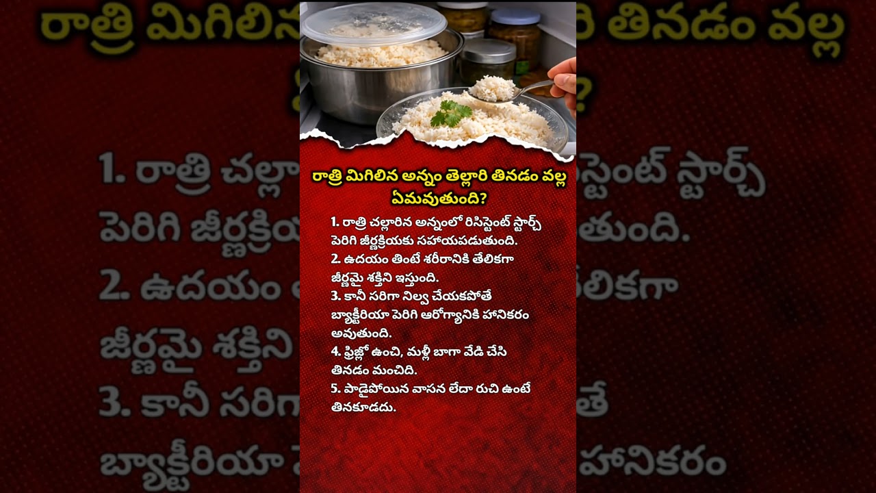 This short video covers important health tips related to food safety, digestion, and daily eating habits. If you regularly eat leftover rice, this information can help you avoid common mistakes and protect your health.
