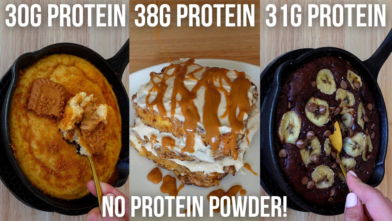 There are endless high protein breakfast recipes on the internet, but very few that don’t contain protein powder and are still delicious. Whoever said that you NEED protein powder in order to hit your goals is lying to you. Because in this video we have 5 high protein, low calorie breakfast recipes that don’t contain protein powder, but still have 30-40 grams of protein per serving and taste like dessert!