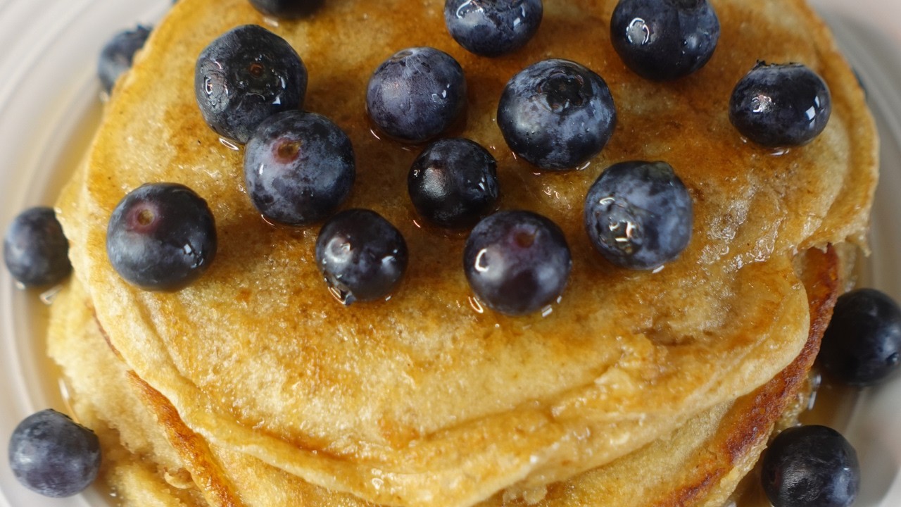 Learn how to make pancakes with this simple breakfast recipe, perfect for a cozy morning. This video demonstrates how to make healthy pancake using Greek yoghurt and oatflour. Enjoy these homemade pancakes with your favorite fruits and drizzle of maple syrup.