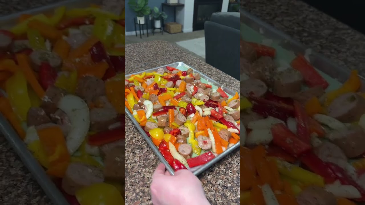 Easy low cal high protein meal prep idea! This is an easy sheet plan dinner served with brown or jasmine rice. 490 cal 30g protein Ingredients: 3 cut up peppers, 6 italian chicken sausages (Im using trader joes) and 1/2-1 onion sliced Sauce: 2 tbsp olive oil, 1 tbsp italian seasoning, 1 tsp salt and pepper, and a heaping 1 tbsp of minced garlic! —Bake at 400 for 35-40 minutes. (I broiled the last 2 mins) Serve over rice! Brown rice would be great for more fiber but i just dont like it ❤️ Each serving: 490 calories, 30g protein #healthydinnerideas #weeknightdinner #lunchideasforwork #healthylunchideas #worklunchideas #sheetpandinner #mealprepideas