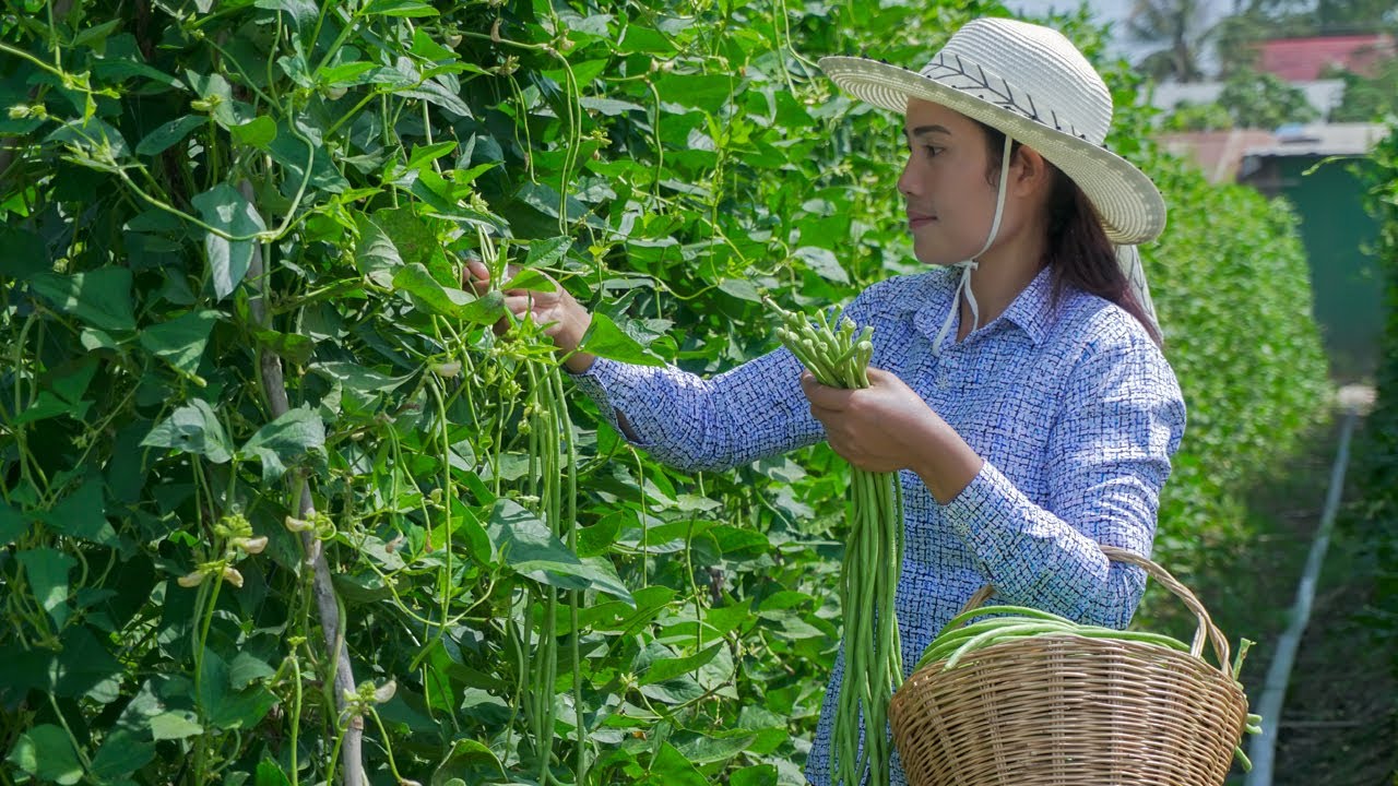 Hello guys! Today I went to pick some long beans to make beef salad recipe. If you enjoyed seeing this please leave a Like, Comment, Subscribe.
