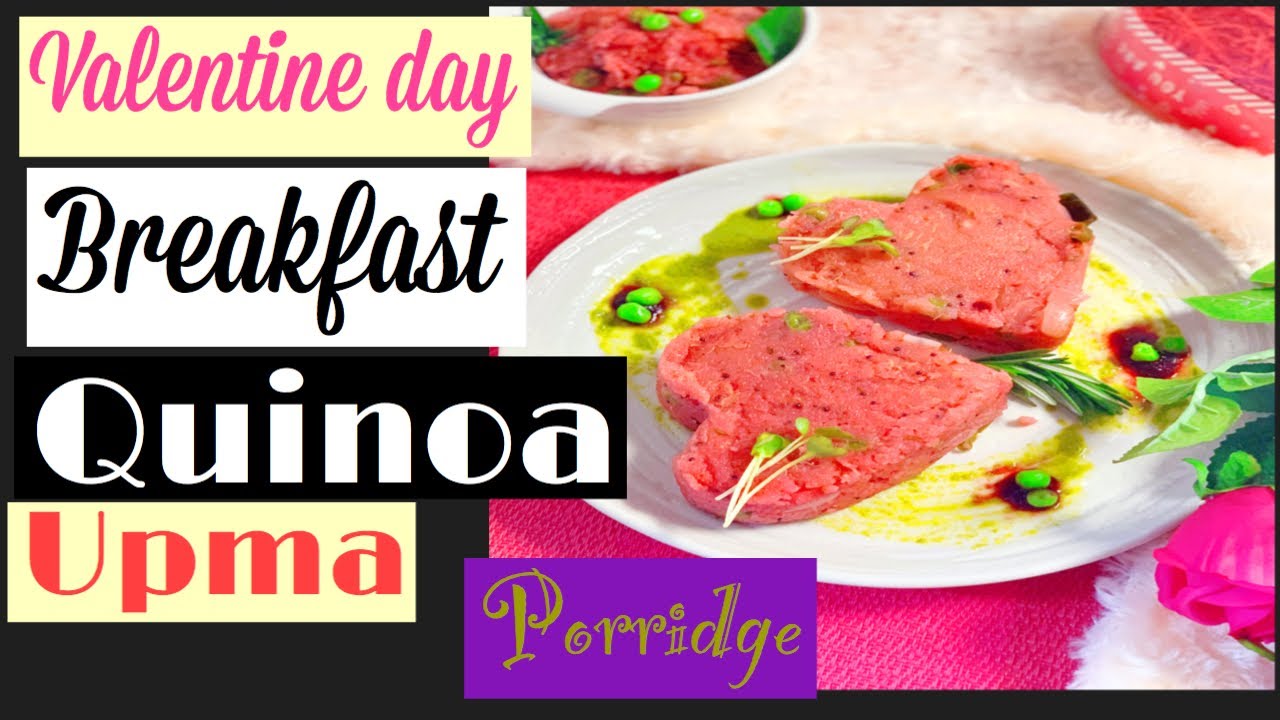 Valentine day healthy breakfast/ quinoa semolina upma/ porridge, this quinoa semolina upma is tradition South Indian breakfast recipe, made with semolina, quinoa and vegetables , it is wholesome tastes great with India tea, a perfect breakfast to me made on valentine day or any other day ,quinoa is good replacement for anything and everything, it makes your dish more wholesome , protein pack , it is one pot meal, easy to put together , vegan and gluten free. It is light on stomach, yet filling and satisfying, it contains twice as much fiber as in other grains, it can be packed into lunchboxes for kids or adults , it makes healthy and light meal , you can serve it with coffee, tea , chutney, podi or pickle on side to enhance the flavor.