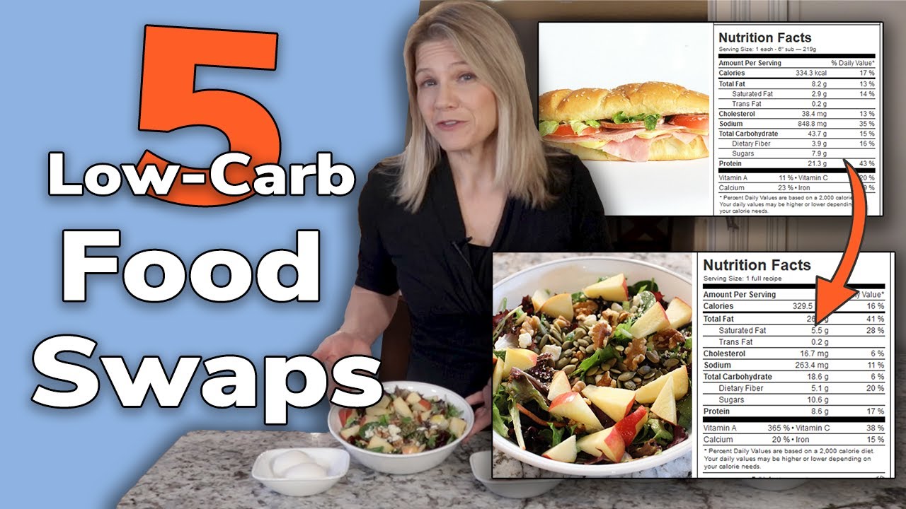 Here are 5 low carb food swaps from breakfast to dessert that will effortlessly and deliciously cut more than 100 carbs out of your day.