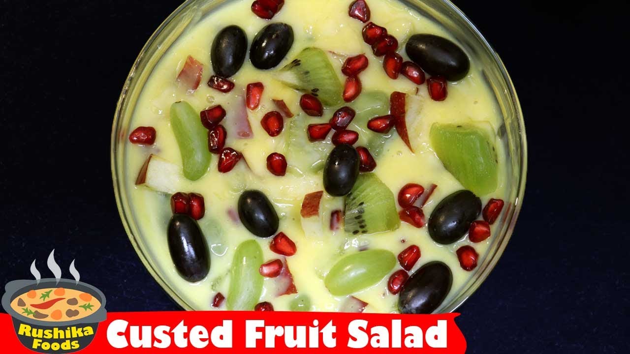 Fruit Custard Recipe in Telugu, Healthy Dessert Recipe, How to Make Custard Fruit Salad Recipe In Telugu, fruit salad and custard